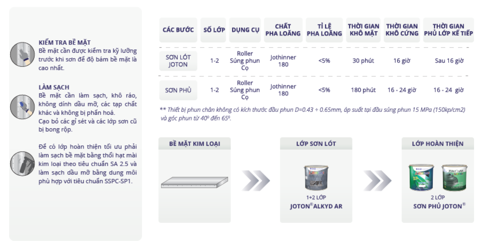 JOTON® ALKYD AR là sơn lót gốc nhựa alkyd. Được sử dụng để chống gỉ và làm tăng độ bám dính của sơn phủ trên bề mặt kim lọai, đặc biệt là kim lọai khó thi công như nhôm, thép và thép mạ kẽm (phần không bị ngâm nước).