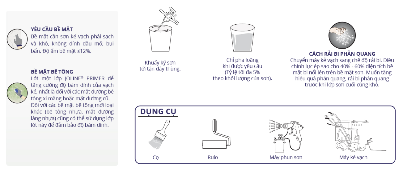 Kẻ vạch đường cho: đường băng sân bay, xa lộ cao tốc, cầu, cầu cảng, giải phân cách, bãi đậu xe, sân thi đấu, đường đua thể thao, nền nhà xưởng,...